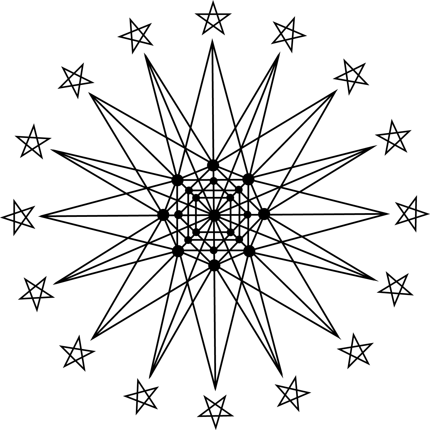 (Dzielimy powyższą liczbę 78 przez 2, ponieważ istnieją dwa trójkąty, prawidłowy i odwrócony, które tworzą Gwiazdę).