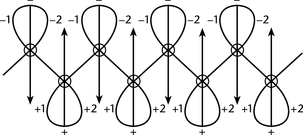 (-2) z gałęzi Negatywnej jest równoważone przez (+1) z gałęzi Pozytywnej i (-1) jest uwalniane.