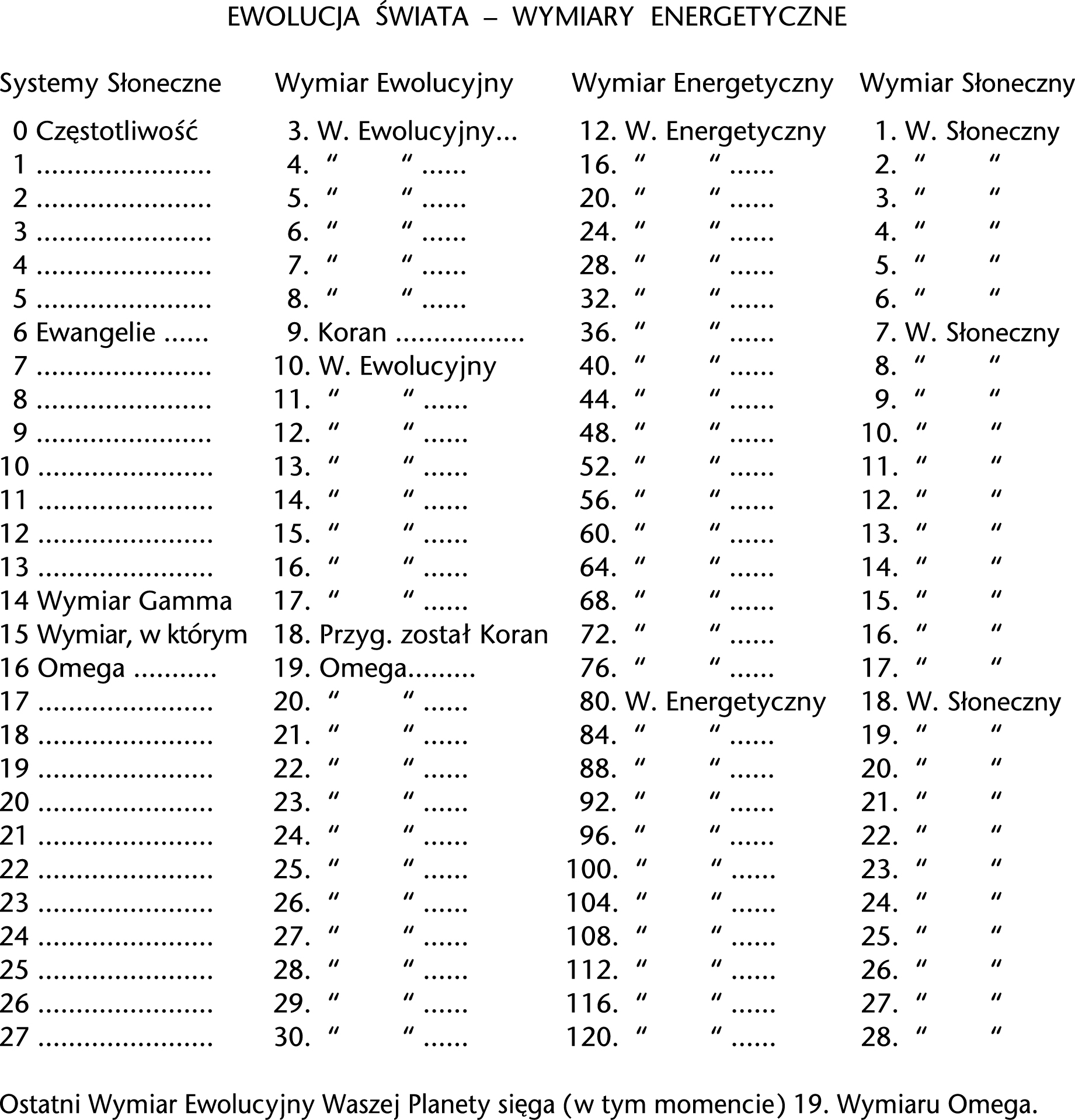 Wzniosły Mechanizm otworzył Wymiary tego Co Nieznane dla waszej Planety zgodnie z programem postępu tego Ostatniego Wieku i Podał, i będzie nadal Podawał wam Wiedzę poza religiami zgodnie z waszymi Postępami Świadomości. Świadomości są Kategoryzowane zgodnie z Wiedzą pobraną z rejestracji na dyskietkach każdego Indywiduum żyjącego na waszej planecie.